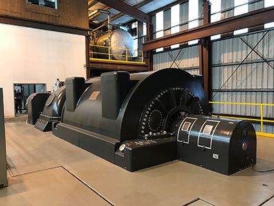 The facility consists of a woody biomass fired 335.7 MMbtu Riley boiler which supplies ~200,000 pounds of steam to a GE condensing turbine directly coupled to a 20 MW generator. The boiler is specifically designed to receive and burn a broad range of woody biomass sourced materials which allows the plant to burn fuel more efficiently with lower air emissions and less overall ash material. This design is a suspended membrane water wall boiler with water-cooled-stationary inclined pinhole type grates.